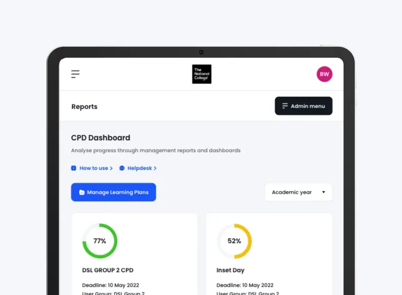 The National College provides a great way of tracking CPD and evidencing what has been completed on the platform. It reduces workload, and we have that data at our fingertips to show which staff have accessed the training.